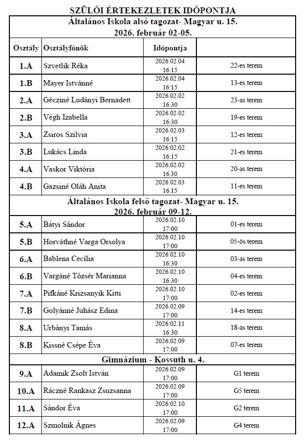 Tájékoztatjuk Önöket arról, hogy 2026. február 13-án, pénteken a felsős és gimnazista farsangi bál előkészületei miatt 13:00 órakor mennek haza az alsó tagozatos tanulók.