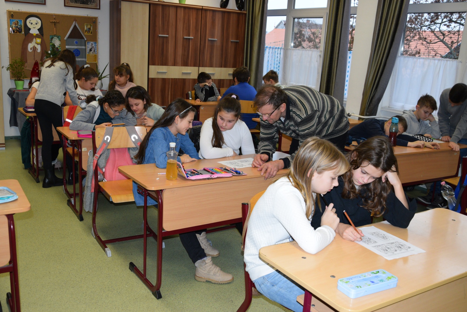 Minden osztályban versekkel, dalokkal köszöntötték a vendéget, több helyen furulyáztak, volt ahol még gitároztak és hegedültek is.