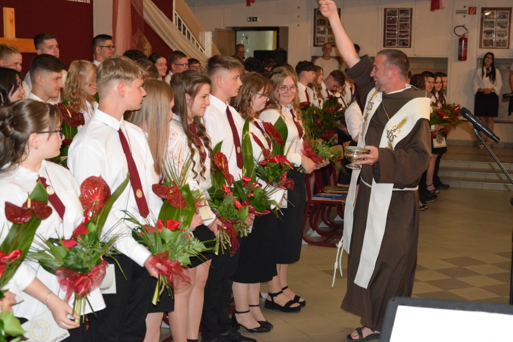 Versekkel, idézetekkel, közös dallal fejezték ki érzéseiket búcsúzó tanulóink. A ballagtató diákok szavalatával, Szenográdi Tamás igazgató úr megható szavaival, Jób testvér áldásával folytatódott az ünnepély. Hagyományunkhoz híven az iskola zászlajára kötöttük az emlékezés szalagját, majd az épület elé vonultunk, ahol a közös éveket szimbolizáló lufikat a magasba eresztettük.