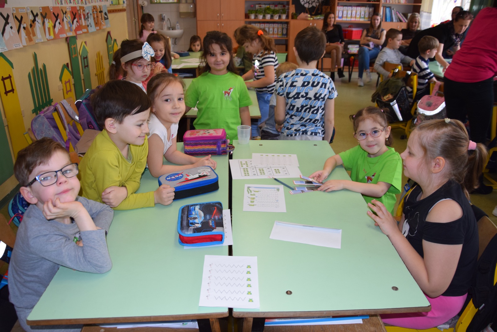 Az alsó tagozatos tanító nénik ezután elvezették a tanulókat a tantermekbe, a tornaterembe, ahol változatos foglalkozások közül válogathattak a tanulók szüleik kíséretében. Volt itt „meseszoba” interaktív foglalkozással, kézműveskedés, melyen színezhettek, ragaszthattak, díszíthettek változatos módon. Aki érdeklődő volt a zene iránt, táncolhatott, mondókázhatott, dalolhatott, mulathatott kedvére. S aki még bírta szusszal, még a nagy tornatermet is megismerhette, s próbára tehette magát az ügyességi és logikai feladatok segítségével.