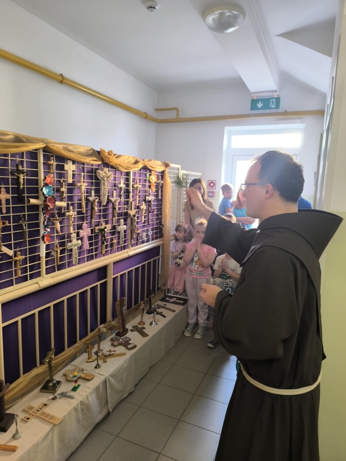 A kiállítás utolsó napján különleges áldás tette teljessé az élményt: Benjámin testvér érkezett közénk, aki imádság kíséretében megszentelte a kiállított kereszteket. Ez a közös mozzanat mély lelki üzenetet adott a tárlatnak — emlékeztetett arra, hogy a kereszt nem csupán jelkép, hanem életünk útjelzője, Krisztus szeretetének és önfeláldozásának örök jele.